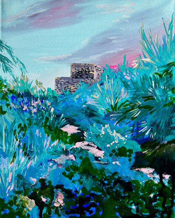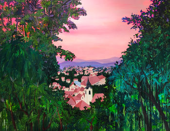 This series started almost by accident. I was painting small studies of places I’d travelled to—drawn to the colours, the light, the rhythm of things. What began as a side project turned into a body of work of its own. These are quiet, observational paintings, made before I turned my full attention to the women who now populate my canvases. A different tone, but the same eyes behind it.